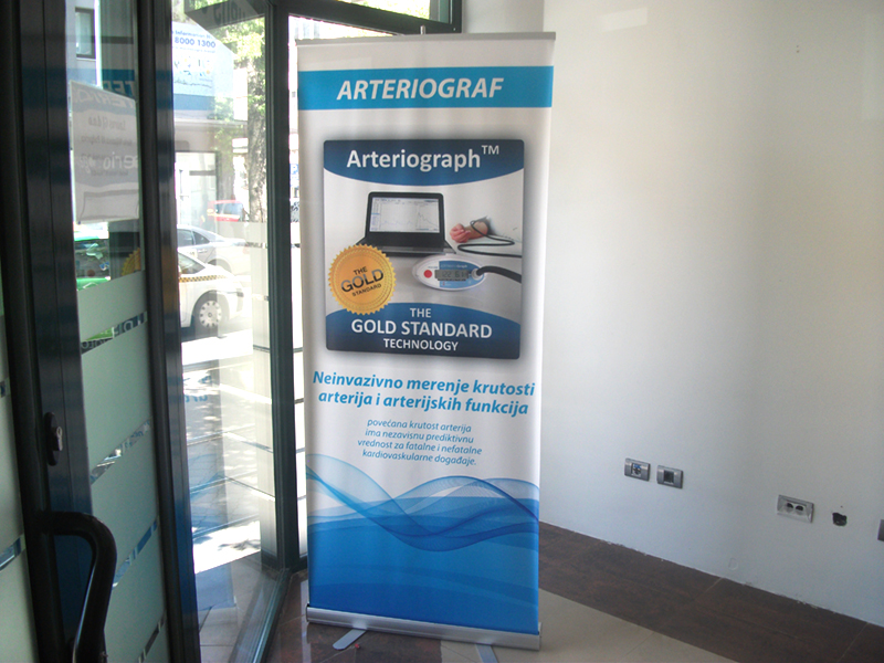 Roll-Up baner je prenosivi aluminijski reklamni pano sa mehanizmom za samouvlačenje/izvlačenje. Koristi se za potrebe isticanja reklamnih poruka na sajmovima, izložbama, prezentacijama, kongresima, izlaganjima, redavanjima... Koristi se isključivo za unutrašnje (enterijerske) potrebe. Prednost roll-up banera je što se uz pomoć jednostavnog mehanizma, sastavnih elemenata i torbice vrlo lako sklapa i prenosi. A jednom kupljeni mehanizam možete koristiti neograničeno, a reklamnu poruku odnosno baner koji se razvlači, možete menjati po potrebi.